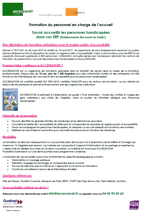 ACCESSAVOIR est un organisme de formation certifié (N°93131182613).